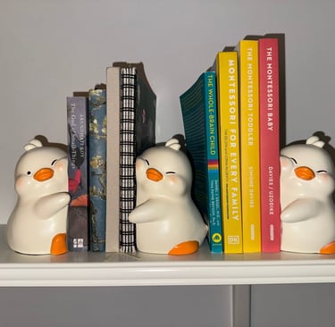 One of my favourite bookends that hold a few books hostage! You can even give each duck a fun name, any ideas?
