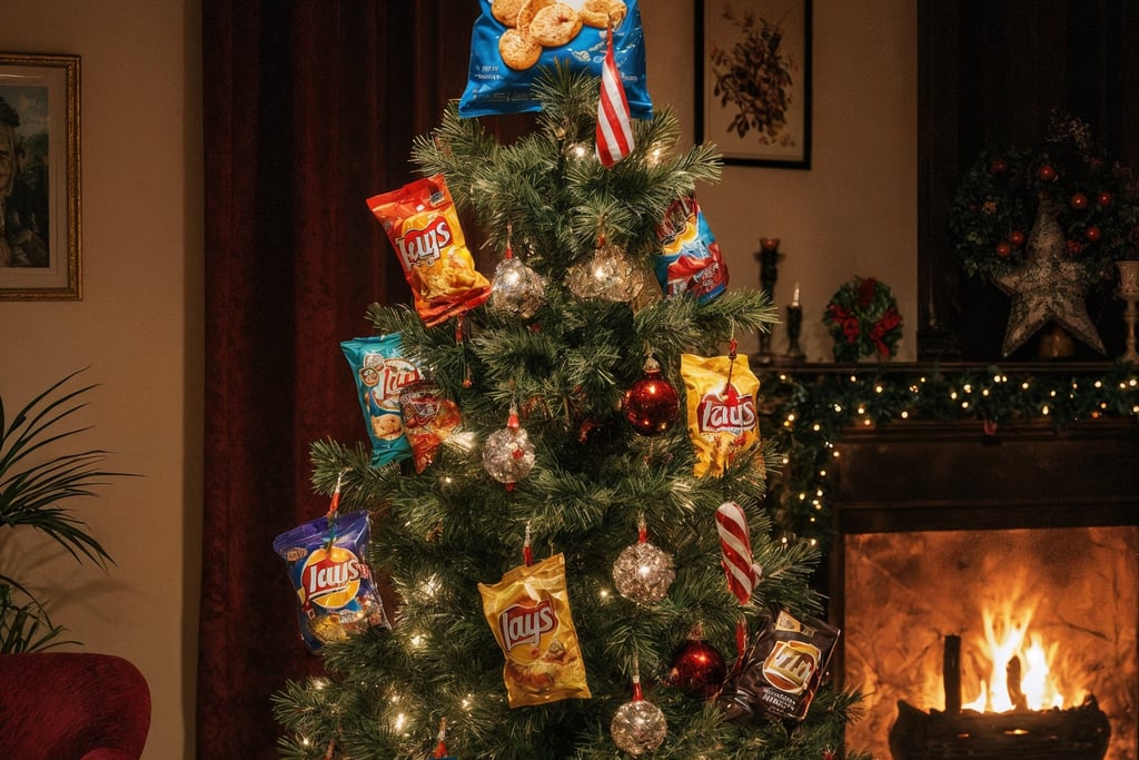 Last but not least, who could resist a tree made entirely of potato chips? It’s innovative, it’s delicious, and it’s probably the only tree that’ll make your mouth water! Construct a pyramid of various chip flavors: classic, barbecue, sour cream and onion, using a sturdy base. You can even string lights around it for that festive flair. Just be prepared for guests to pick off the ornaments and snack their way through your masterpiece. Who knew holiday decorating could be so tasty?