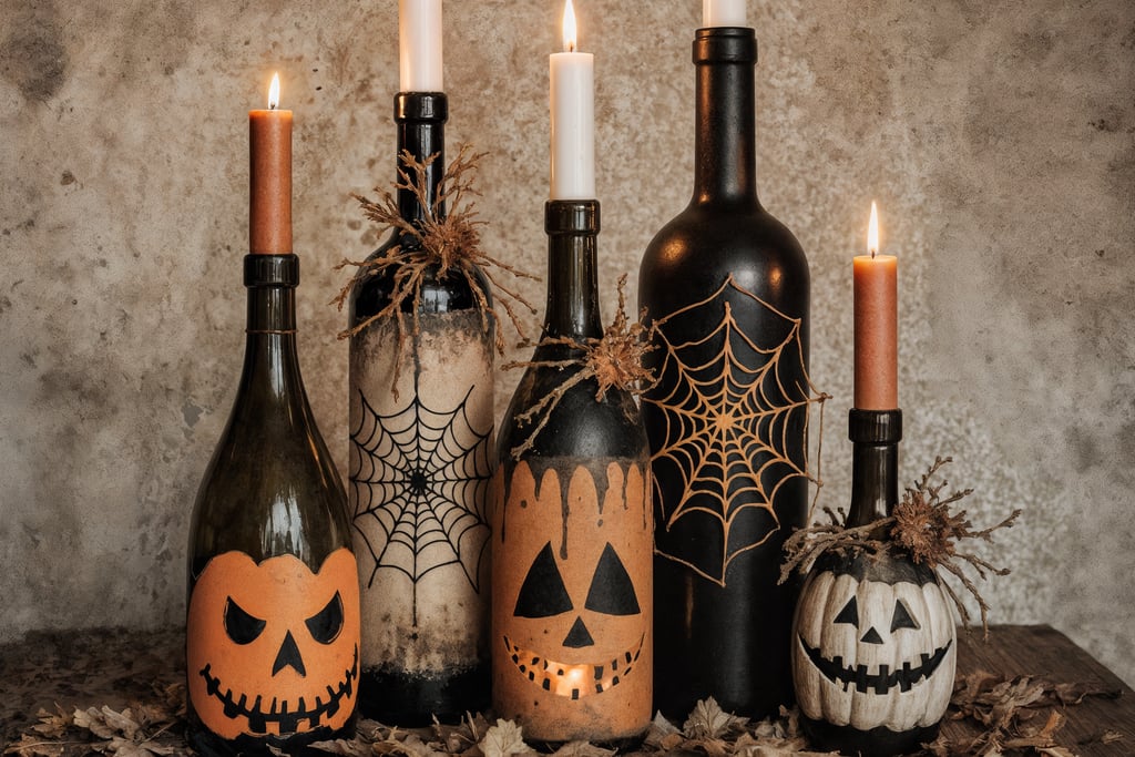 Display: Arrange your decorated bottles together on a table or mantel for a festive Halloween look.