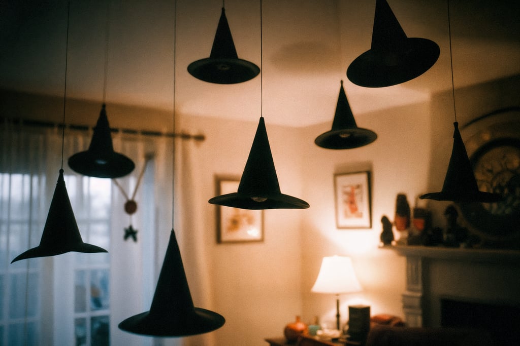 Hang the Hats: Secure the other end of the string to a hook or tape it to the ceiling.