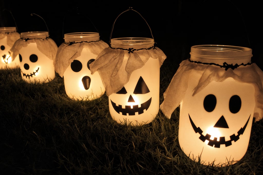 Draw Faces: Use a black marker to draw spooky faces on each lantern or jar.