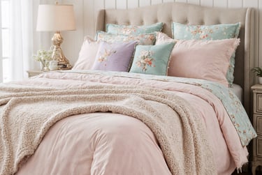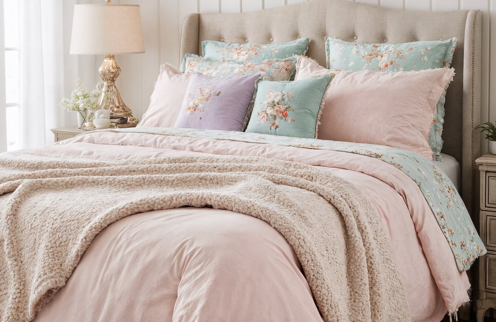 For those who prefer a softer approach, consider pastel shades of pink, lavender, and mint green. A blush pink duvet can be surprisingly festive when matched with delicate patterned throw pillows featuring subtle holiday motifs. Layer in a light pastel-colored throw blanket with a texture that says “cozy.” It’s sweet and sophisticated, perfect for the discerning holiday host who enjoys subtle charm over loud décor.