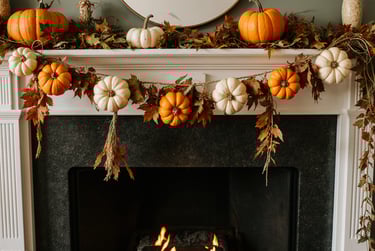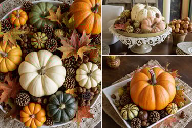 Create vignettes with an array of pumpkin sizes and colors. Mix pumpkins with other fall elements like acorns, pinecones and autumn leaves. This not only adds visual interest but also allows you to showcase your creativity. Place these vignettes on coffee tables, bookshelves or dining surfaces and watch as your guests marvel at your pumpkin prowess.