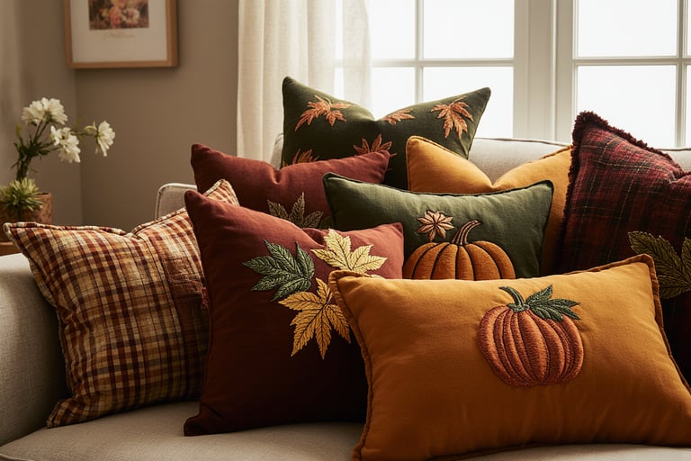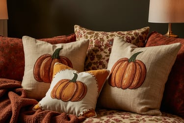 Bring the pumpkin theme indoors with decorative pillows. Look for designs that feature pumpkins or fall motifs. These can be mixed with other autumn colors and patterns to create a warm inviting space. Throw pillows are an easy way to update your decor seasonally without a complete overhaul.